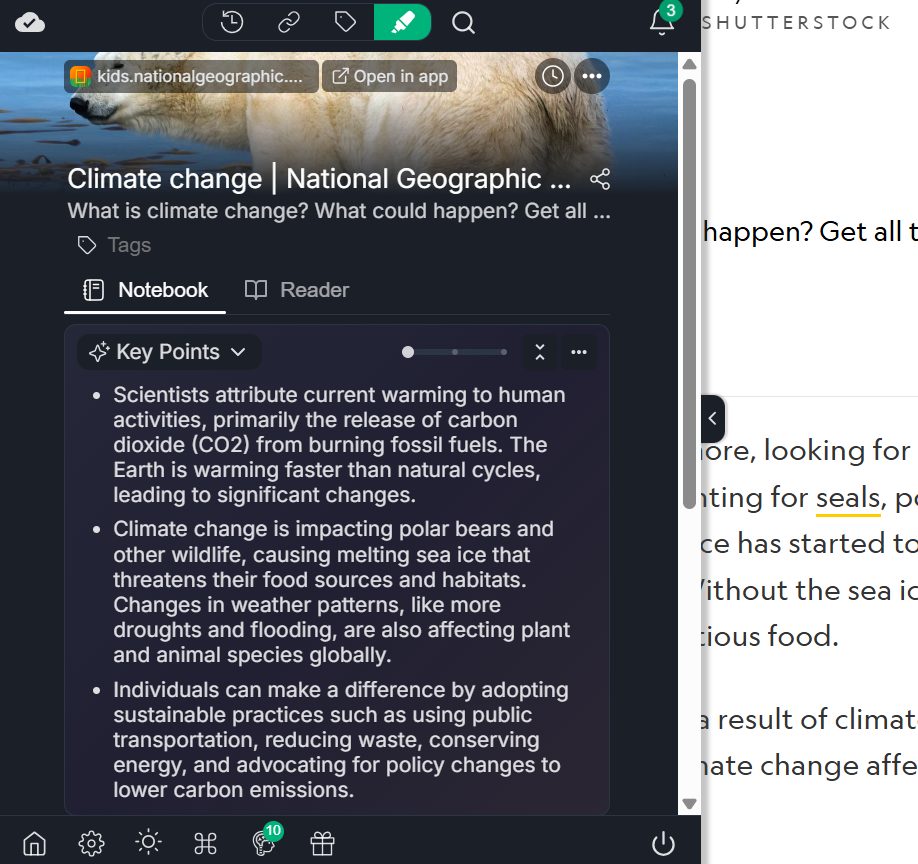 A cluttered page makes reading harder than it needs to be. Web Highlights also includes Reader Mode, which lets users read without the extra noise on the page.